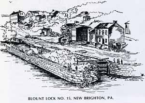 Below Clarke's Mill, down as far as Brighton, a distance of 14.44 miles, I propose to make slack water navigation; I have accordingly located a towing path on the bank of the Beaver, all the way to that place, and as many dams as I considered necessary to effect the object in the most economical manner. Dam No. 1 is located at Newcastle across the Neshannock and is made as above stated, for taking out the water of that stream for a feeder. No. 2 is located at Hardscrabble, and makes the first pool 1.92 miles long. No. 3 is located a little above the mouth of the Connoquenessing, and makes the 2d Pool 4.22 miles long. No. 4 is located at Dr. Adams, at the head of the falls of Beaver, and makes the 3d pool 7.16 miles long. No. 5 is located at Brighton at the site of Mr. Patterson's dam, and makes the 4th pool 1.10 miles long. Their dimensions are given in the estimates. At the 2d and 4th dams, I have located short pieces of Canal. That at the 2d dam is 13 chains long, and that at the 4th is 32'/2 chains long. These enable us to pass round the dams, and to obtain a convenient place to debouch into the pools below.