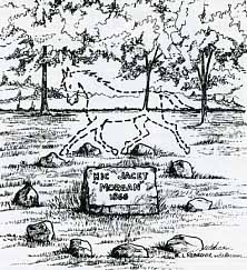 When I was a child by grandfather, Arthur B. Bradford Jr., born in 1848 often used to tell me stories of his growing up years at "Buttonwood" on a farm near Darlington, Pennsylvania, owned by his father, Arthur B. Bradford Sr., in Beaver County. One of the stories was about his father's horse, "Morgan". Arthur B. Bradford Sr., was an active abolitionist and in those days before the Civil War there was a good deal of danger in helping with the Underground Railroad. A good fast horse was needed for getting arrangements made quickly to get slaves from one "station" to another. "Morgan" was also a pet of the Bradford family. When he died in 1866 he was buried in the pasture below the house. His grave was marked with a circle of field stones and my grandfather erected a tombstone with the words: HIC JACET (Here lies) "Morgan" 1866, cut on a sand stone slab. The circle of stones can still be seen and the lettering cut in the tombstone is still legible. This was one of the first things that I looked for when I came to "Buttonwood" in 1926. The pasture is now overgrown with trees, but "Morgan's" grave is still undisturbed - as was the wish of his owner.