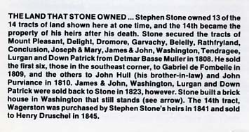 Family records indicate that Stephen Stone, a retired schooner captain who had traded between New England and the West Indies, first came to this area in 1804, which coincides with the date that the 13 tracts were assigned to Muller.