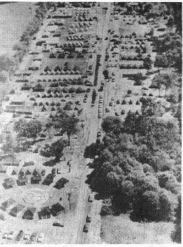 TENT CITY was located just south of the old drive-in Theatre on old Route #51, Chippewa Twp. First to arrive at the campsite was a group from Everson Volunteer Fire Company. Four firemen arrived Wednesday nite and slept at the Creighton and May service station on old Route 51 in Chippewa Township when one of their trucks broke down. Albert Pogwizd, held the dubious distinction of the first casualty. He had a band-aid put on his head from a bump he received when he bumped his head on one of the brackets on a truck. Aerial pictures of the Campsite "Tent City" were taken by the News Tribune photographer from a plane flown by Paul Moore of Patterson Heights Airport. The public was invited to drive through the campsite to view the set-ups, however, you had to hi invited into the individual camp areas. The visiting firemen were very happy to show visitors their camp set-up. Local police departments reported no real trouble but reported quite a few get-ups, shenanigans and pranks at the campsite. Women carried their money on an inside pocket (stocking tops) and were not embarrassed to reach for it when needed. The judging of the campsites named the Everson Volunteer Fire Co. as the largest-, Westinghouse, best equipped; South New Kensington the cleanest; Glendale, the smallest.