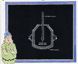 The basic oxygen furnace, or BOF, offers an efficient, economical way of accomplishing this metallurgical trick. J&L's BOFs at Aliquippa, Cleveland and Indiana Harbor refine the major portion of the steel we make.