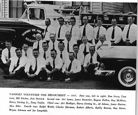 In a tavern, then called "Beaver Tavern" a group of men including Ralph Taylor, Ott Burnett, Al Eller, Harry Edwards, Wes Gordon, Paul Beggs and Wes Singleton, decided to have a volunteer fire department; in 1934 this took place.