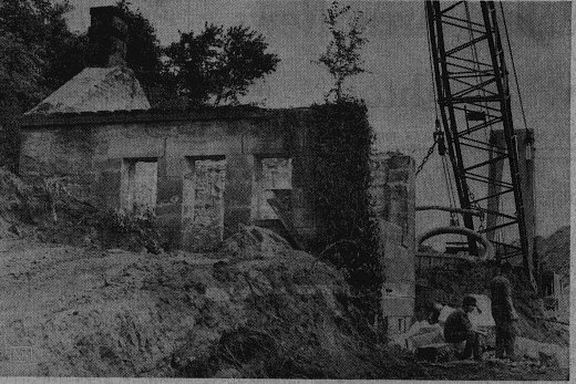 Finally, this week, Mrs. Douthitt wrote a letter pleading with Rochez Industries, Inc., East Pittsburgh, backers of Dodds, to help save the structure. At 9:30 a.m., the Rochez brothers, Leo and Joe, responded by disassembling the building stone by stone (with the help of a high lift) to get it out of the way of the operation and permit the local society to rebuild it elsewhere.
