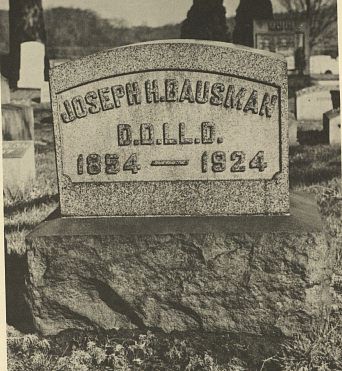 When checking the route, you notice another tombstone of particular interest alongside the Jacob Weyand Plot ... the grave of the Rev. Joseph H. Bausman, author of the most comprehensive local history. Dr. Bausman's two-volume History of Beaver County, Pennsylvania, published in 1904 by the Knickerbocker Press of New York, is a scholarly work that is much appreciated by local residents interested in history, including those of us from the Heritage Foundation who do the research for these Walking Tours. Dr. Bausman, who was born in 1854 and died in 1924, was minister of the First Presbyterian Church of Rochester from 1887 until 1892.